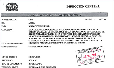 Congreso ASORL 2015 Carta de Permiso del ISSS Permiso del ISSS al Congreso de Otorrinolaringología 2015 DOCcorregido Más Información »